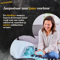 Dankzij het gebruik van hoogwaardig versnipperd traagschuim behoudt het DreamChaser-kussen zijn vorm en veerkracht jarenlang. Bij normaal gebruik gaat het gemiddeld 3 tot 5 jaar mee.