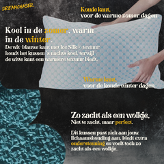 Of je nu wakker wordt in een warme zomerbries of onder een winterdekentje kruipt – het RAMBUX® DreamChaser kussen past zich aan. De verkoelende Ice Silk®-zijde houdt je fris in de zomer, terwijl de zachte zijde warmte vasthoudt in de winter. Zo slaap je altijd comfortabel, het hele jaar door.