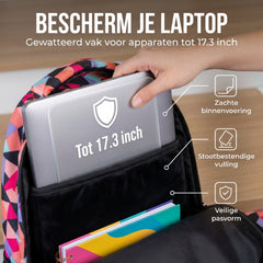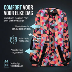 Dieser Schulrucksack ist für Jugendliche, Schüler und Studenten konzipiert. Sein modernes, abstraktes Design verleiht ihm einen coolen Look und macht ihn für jede Situation geeignet: von der High School über die Uni bis hin zur Freizeit. Dank der verstärkten Rückenpartie und der verstellbaren Schultergurte ist dieser Schulrucksack mit Laptopfach bequem für den Alltag.